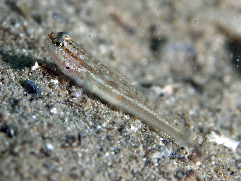 撮影 2008/09/04 沖縄県 西表島 掲載 2013/03/18 ⇒ハゼの仲間 幼魚。 成魚と何が違うかというと、サイズが小さいことだけれど写真ではサイズは示せないし・・・。あとは縦帯も横帯も明瞭ではない、というあたりかな〜。