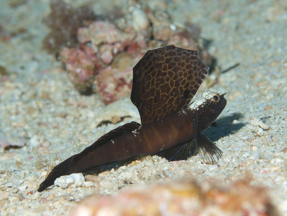 奄美大島に出かけたのはこのハゼを撮りたくて。水深30mほどにいるので、背びれが開くのをのんびり待っている時間はありません。