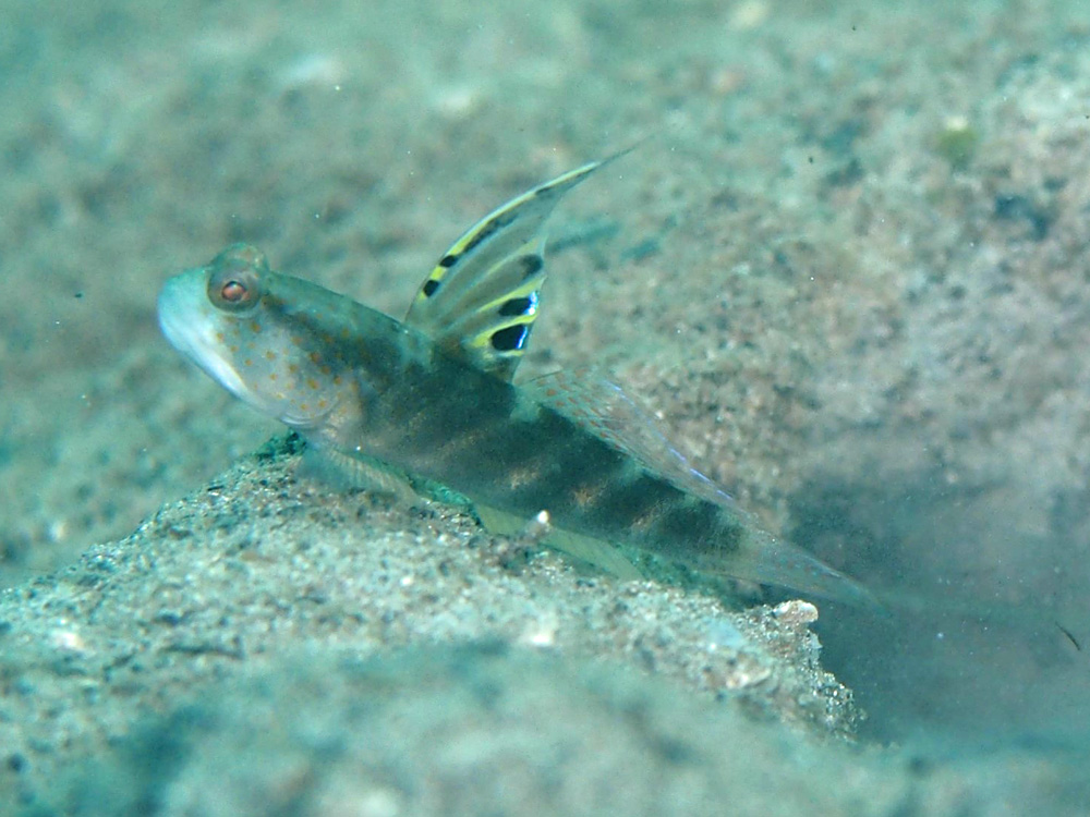 この個体は第一背鰭の形が三角形に近い上に第二棘が伸延していて、良く見かけるカスリハゼの第1背鰭の丸みを帯びた形とは随分違って見えますが、斑紋は第1背鰭も第二背鰭もまさにカスリハゼのそれですし、「Indonesian