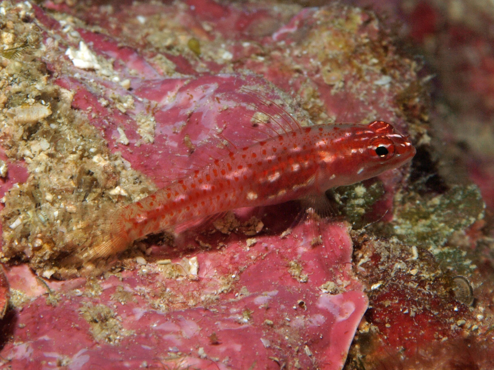 赤い斑点が全身に規則正しく描かれていて、地味なイソハゼ属の中では写真写りが良い種類だと言えます。