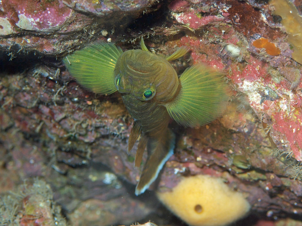 八丈島で初見のベンケイハゼを見せてもらえるとは思いませんでした。嬉しかった。ときどき奥の方から出てくるのですが、外の様子を伺っているのか横向きになってくれません。