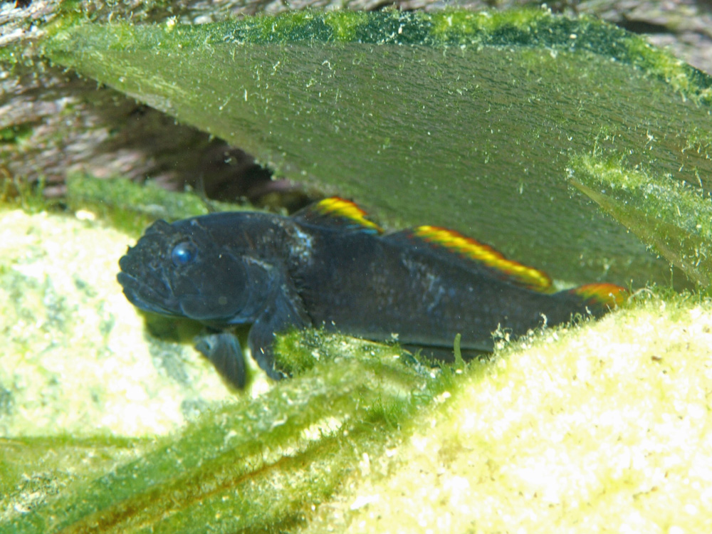 後で図鑑を調べてもそれらしい魚は見当たりません。ということでガイドが瀬能先生に問い合わせたところ「クモハゼの興奮色(婚姻色)」という回答をいただきました。さすがに何でもご存知なのですねー。尊敬。