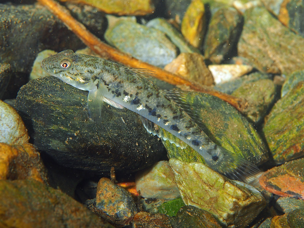 河川で撮りました。太陽光が水底に反射して虹のようにキラキラしています。結構素早い個体で、「姿を現したなシメシメ」と思っていたら、試し撮りをしただけでサッサと逃げられてしまいました。エーン、もっとしっかり撮りたかったよー(涙)。