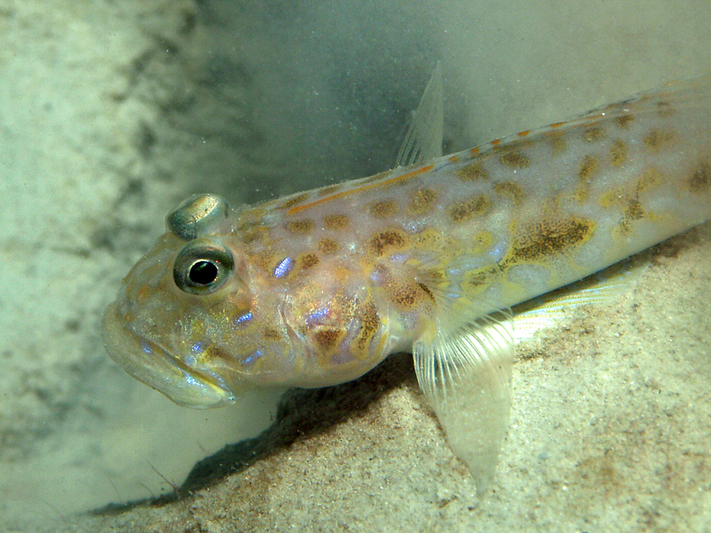 撮影 2008/08/10 沖縄県 石垣島 掲載 2013/02/15 ⇒ハゼの仲間 近くから撮った写真を見たら、思ったよりカラフルなので追加掲載しました。 そして大きな口。横幅が顔面よりも張り出ています!