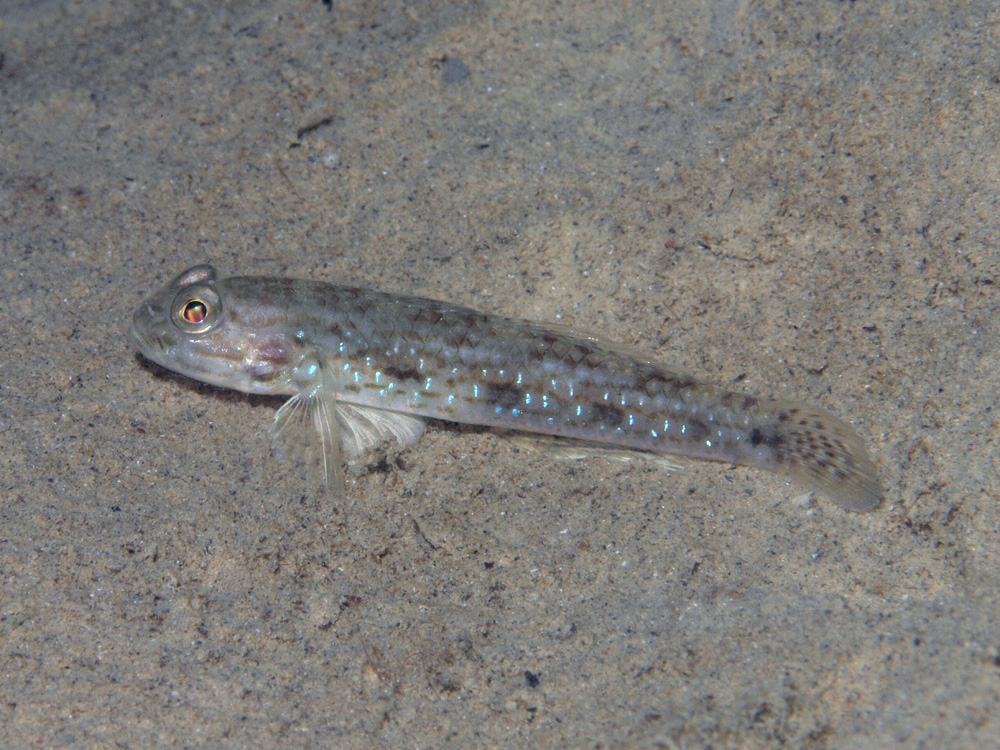 『日本のハゼ』 瀬能宏/矢野維幾/鈴木寿之/渋川浩一 (2004年初版 平凡社) 419ページのキララハゼ属の1種(現在はオキナワスジハゼと和名がついています。)と一致します。撮影地が沖縄島の金武なので既掲載の疑問符付きとは違って、疑問符なしの名前での掲載です。ああスッキリ。