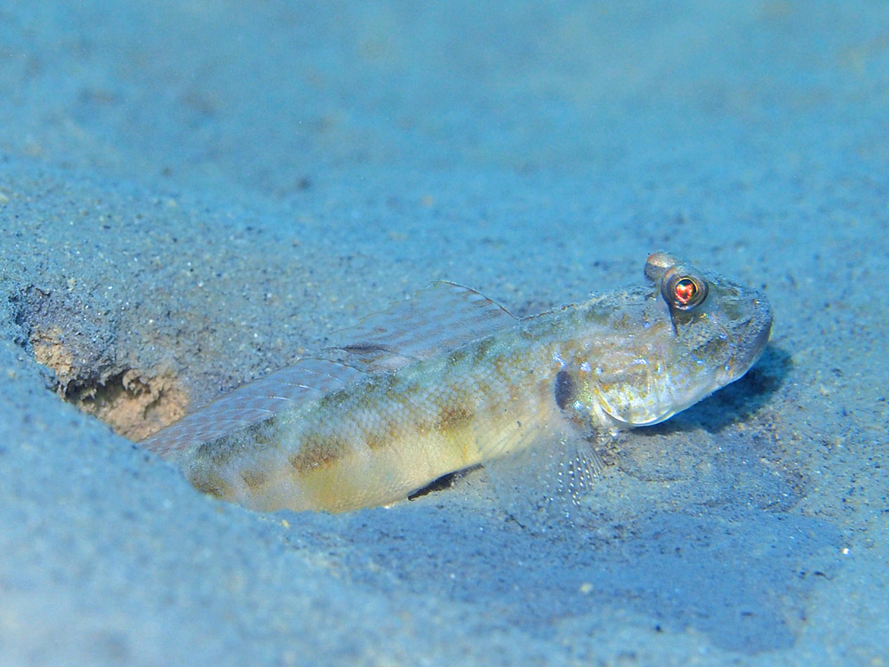 この個体は最後まで巣穴から出てきてくれなかったのですが、背鰭をしっかり広げていて模様が見えるので追加しました。