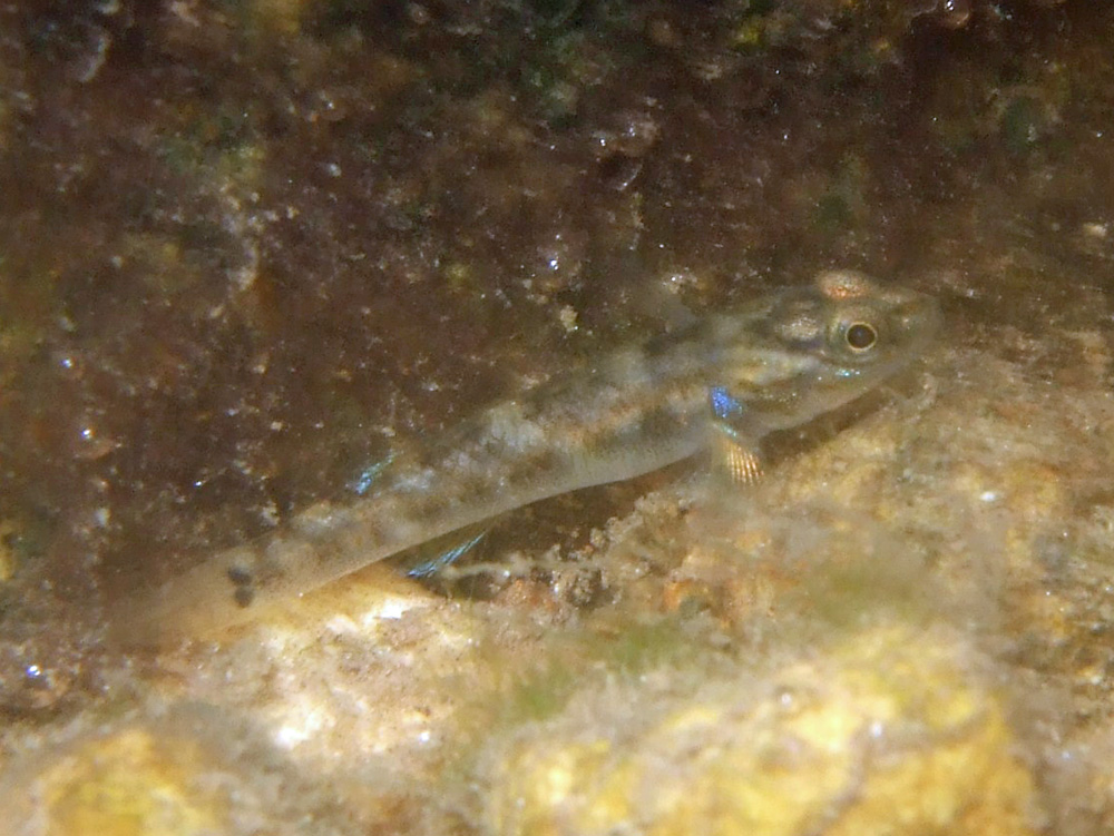 島の奥のほうにある公園の小さな堰にたくさんのヨシノボリの子供がいました。水中に手だけ突っ込んで勘でシャッターを切って撮った写真です。