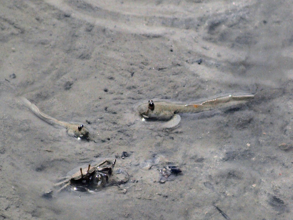 成魚と同じ泥池にいた幼魚たちです。大人が15cm前後で、写真右の子どもは7cm、左の子どもは4cmくらいでした。