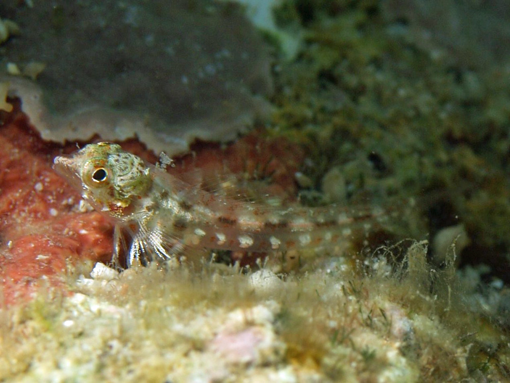 体の柄はカスリヘビギンポによく似ているけれど、その決め手である下顎が突き出ていないのでボツ。