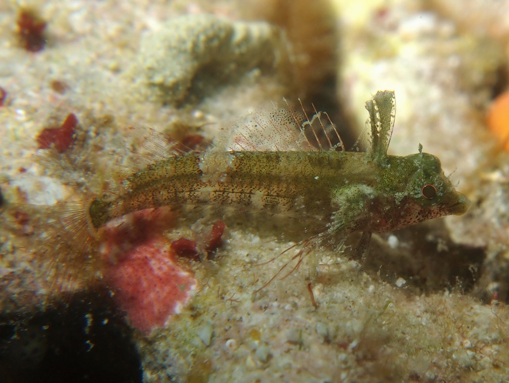 長い胸ビレが微かな流れにたなびいてヒラヒラと舞っています。なんだかヘビギンポらしくない優雅さだなあ。
