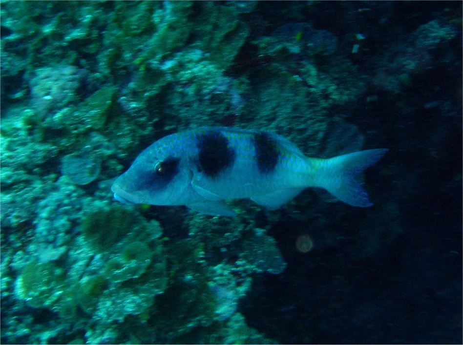 ヒメジというと群を作って砂地に顔を突っ込みながら移動するイメージがあるのですが、この被写体は岩場の上で何をするでもなくボーっと漂っていました。