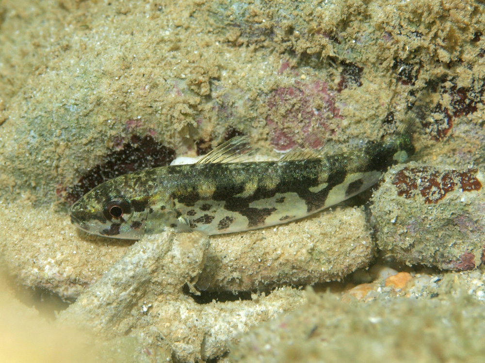 ヒメジの仲間は休憩時や夜に体色や模様がガラッと変わる種類がけっこうあって、この魚もその一種だと思います。それらの変化までもれなく載せている図鑑はないため、種類の判定はボクには不可能です。