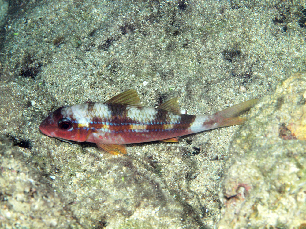 ナイトダイビング。海底でジーッと睡眠中のところを撮影しました。昼とは体色が変わっているので同定に悩みましたが、オジサンにほぼ間違いないと思います。夜の方がきれいだなあ。