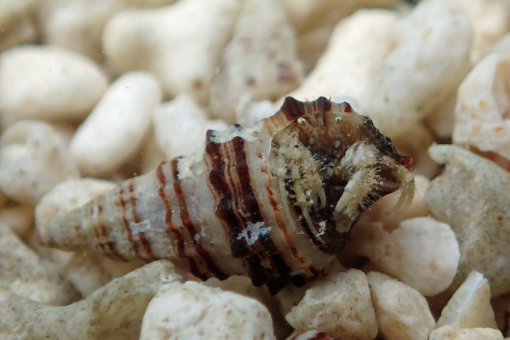 Diogenes pallescens は体中にコケやらゴミやらをまとっているのがの特徴で、更に悪いことに目柄なども変異が多いそうです。つまり同定が難しい種類なんですね。