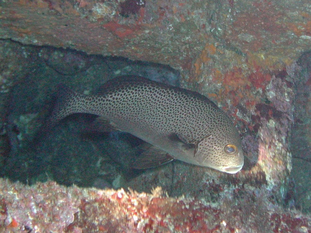 ガイドがライトで照らしているため少々マブシそうですが、それでも場所を移動せずにジッと浮いていました。