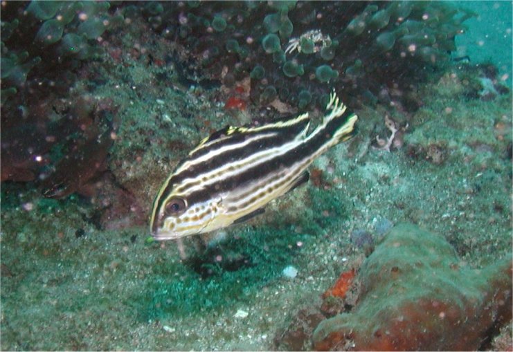 幼魚です。 前に載せたコロダイが幼年期とすると、この被写体はそれより成長して少年期といったところか。表情に若干の幼さが残っているものの、体形がだいぶしっかりしてきて、なよなよしたところは見られなくなっています。