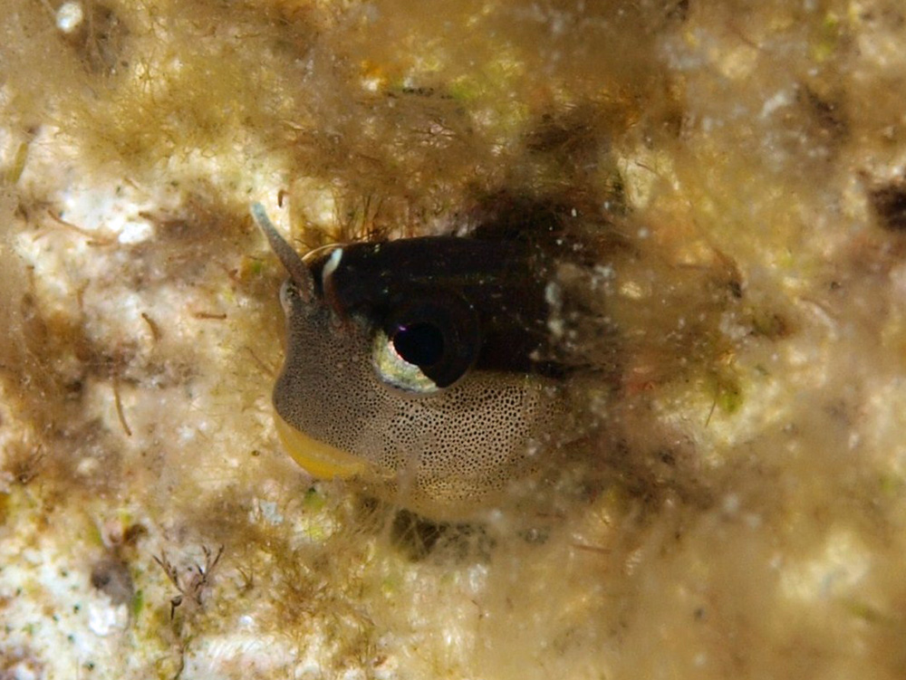 撮影 2009/06/11 沖縄県 石垣島 掲載 2014/01/14 ⇒イソギンポの仲間 初対面で今まで撮ったことのないギンポかと思ったらサニアラズ。ヒトスジギンポが体色を変えて、ボクをダマクラカシタのでありました。でもカワイイから許す。