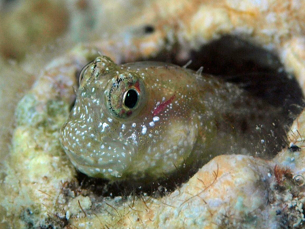 撮影 2009/08/04 沖縄県 竹富島 掲載 2014/06/01 ⇒イソギンポの仲間 ふだんの顔の模様の写真が撮れたので追加しました。 パッチリオメメがチャーミングだし、頬に走るピンク色がオシャレです。 んー、カワイくて好みのタイプだ!