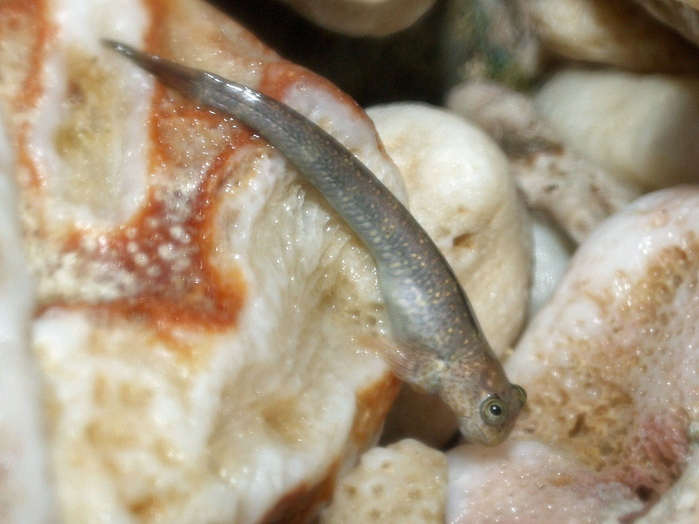 この個体は幼魚ですが、体が小さいというだけで、成魚と大きな違いはないかなー。成魚と同じく陸上で撮りました。