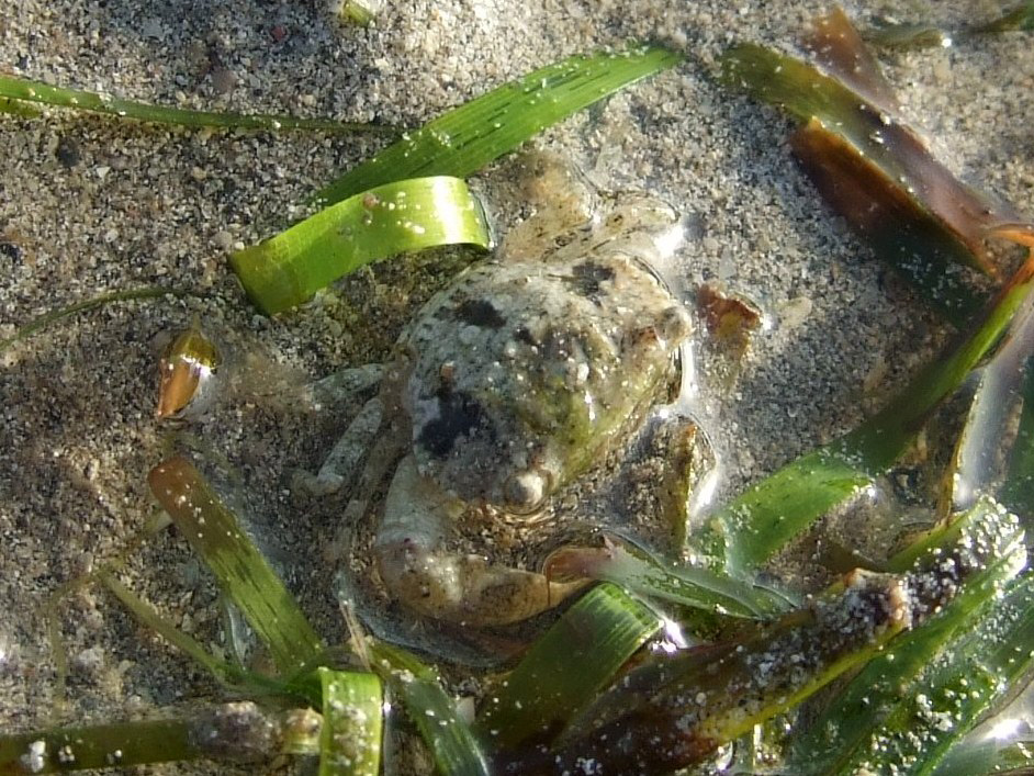 サンゴ礁の浅い砂地に生息する小型種で、体は淡褐色。甲面に不規則な暗褐色のまだら模様がある(海の甲殻類 文一総合出版)のですが、ヴァリエーションが多いと思われ、同定に至るまでに苦労しました。