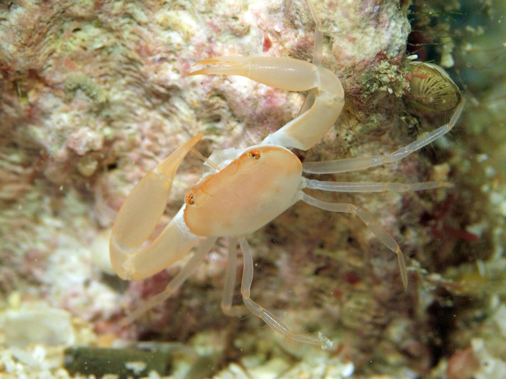 カニにしてはずいぶん華奢な体つきです。体色も薄造りで上品です。おそらくカニの世界の上流階級の一員なんでしょう。