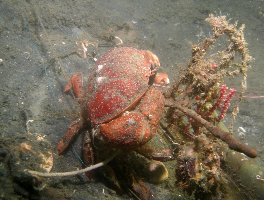 一応図鑑と称しているHPに掲載するにはふさわしくないかもしれませんが、何本もの色とりどりの釣り糸でがんじがらめになっている姿です。