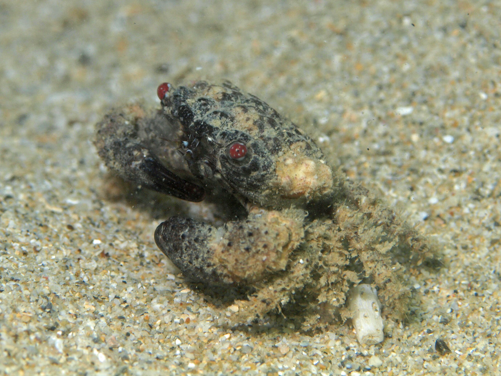 『沖縄海中生物図鑑 7 甲殻類(カニ)』 海中公園センター (1988年初版新星図書出版)183ページに掲載されています。学名は、Phymodius granulosus となっていますがBISMaLに従ってCyclodius ungulatus としています。