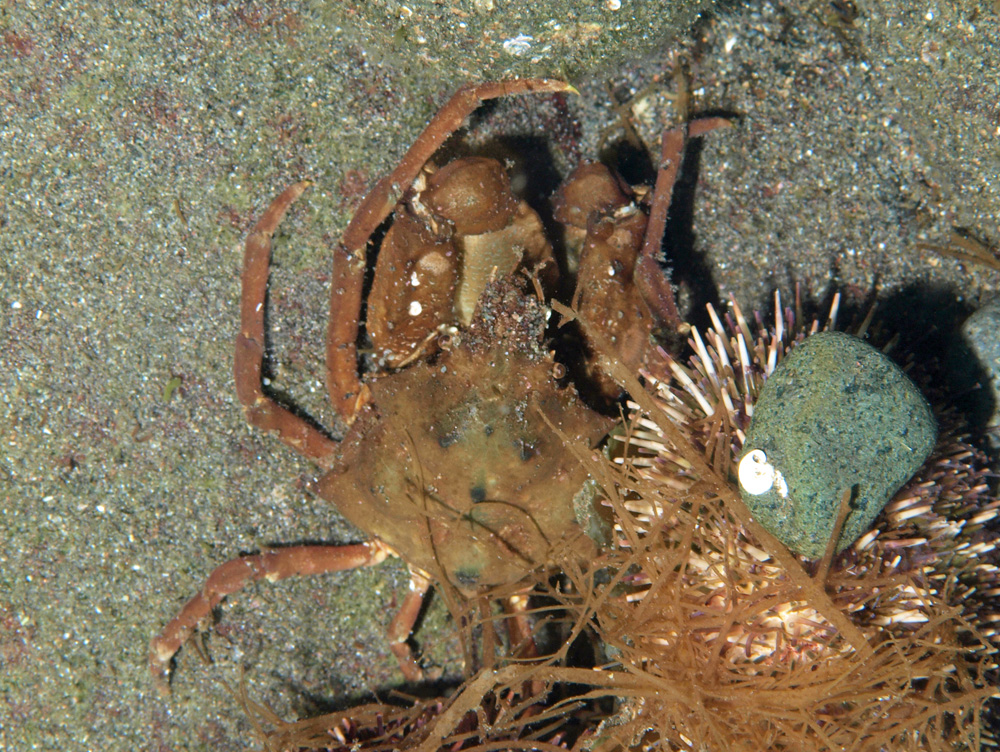 このカニは体に目くらましのカイメンなどを付けていることが多いのですが、今回は何もつけていないので甲や脚がそのまま見えます。その点は大いにプラスです。