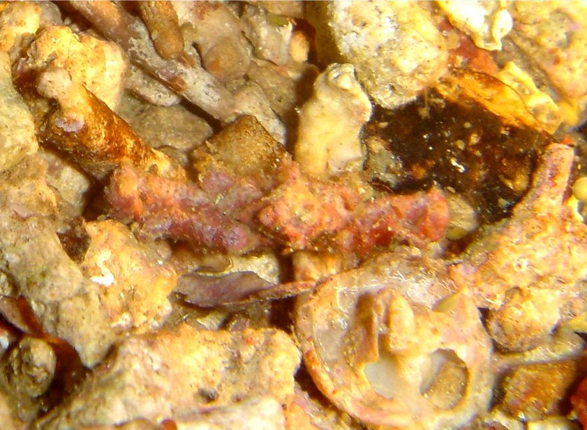 ナイトダイビングで撮影。甲幅が1cmほどの小さなかにで、腕の形からするとヒシガニ属かなーと思うのですが決め手はありません。
