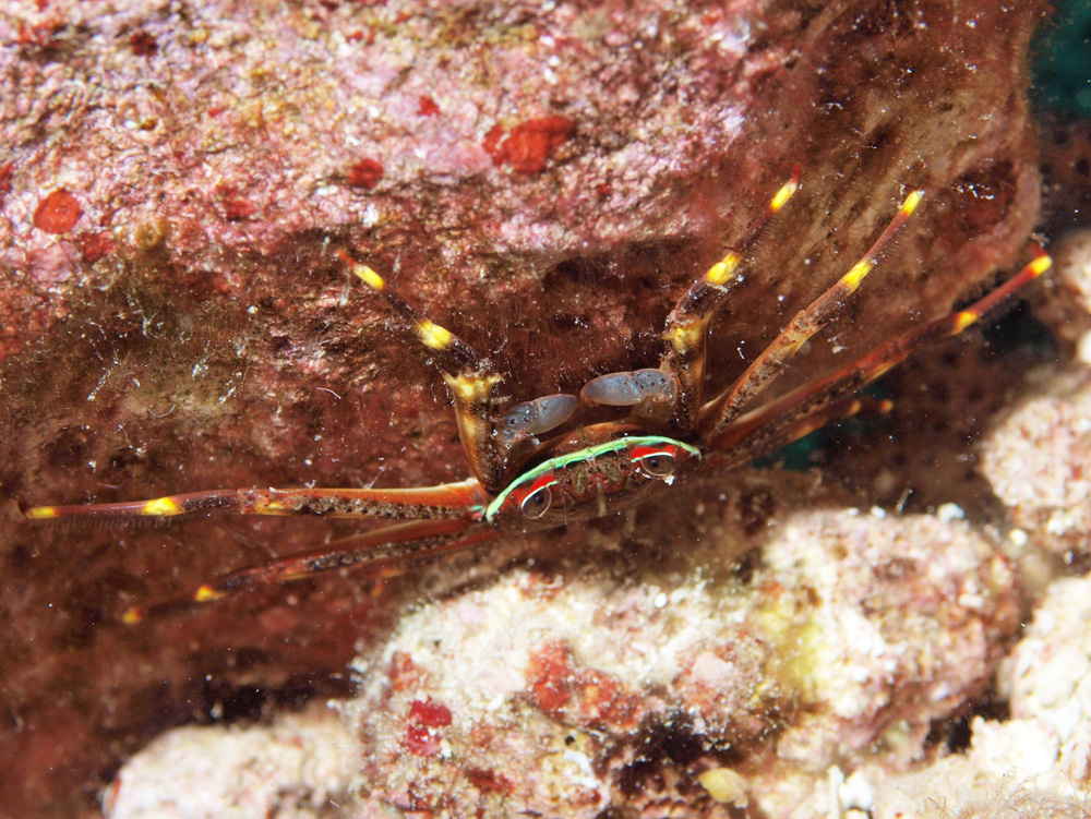 撮影 2009/07/10 沖縄県 石垣島 掲載 2014/05/01 ⇒カニの仲間 タイドプールや浅場の岩陰で何度か見かけています。 いかにも逃げ足が速そうですが、実際はわりあいじっくり写真を撮らせてくれました。良い子だなあ〜。カラッパさんのブログのここに掲載されています。