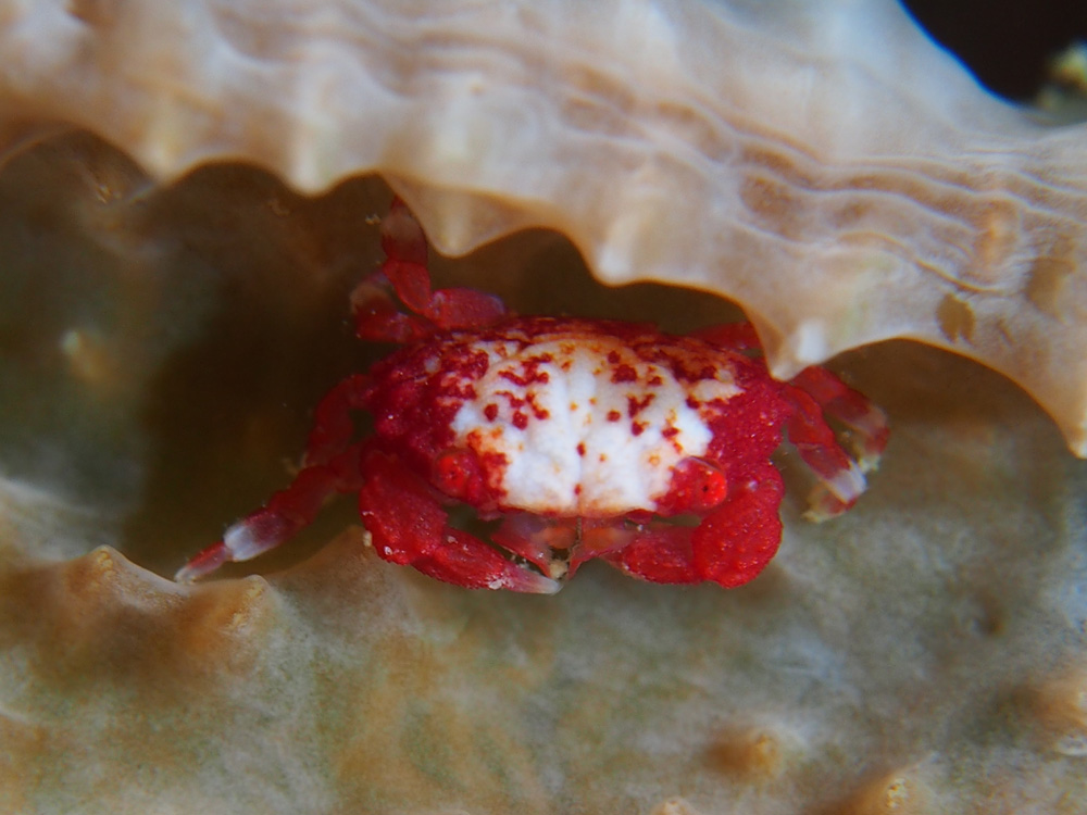 撮影 2013/01/31 沖縄県 沖縄島 掲載 2016/06/06 ⇒カニの仲間 ちっちゃくて赤くて怯えていたカニさん。よほど恐ろしかったのかこの場所で固まってしまいました。 申し訳なく思いながらも撮らずにはいられずに何枚かシャッターを押していると、状況に慣れたようで近くの餌を啄ばみはじめました。恐怖心を持続させるのって結構難しいんですねー。