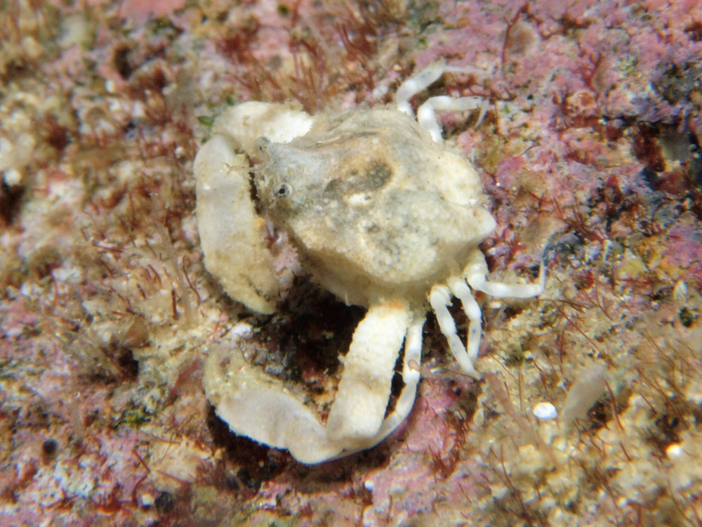 ナイトダイビングで撮りました。甲殻類に詳しいガイドが「コブシガニ科だと思いますが、種は分かりません。」ということでした。