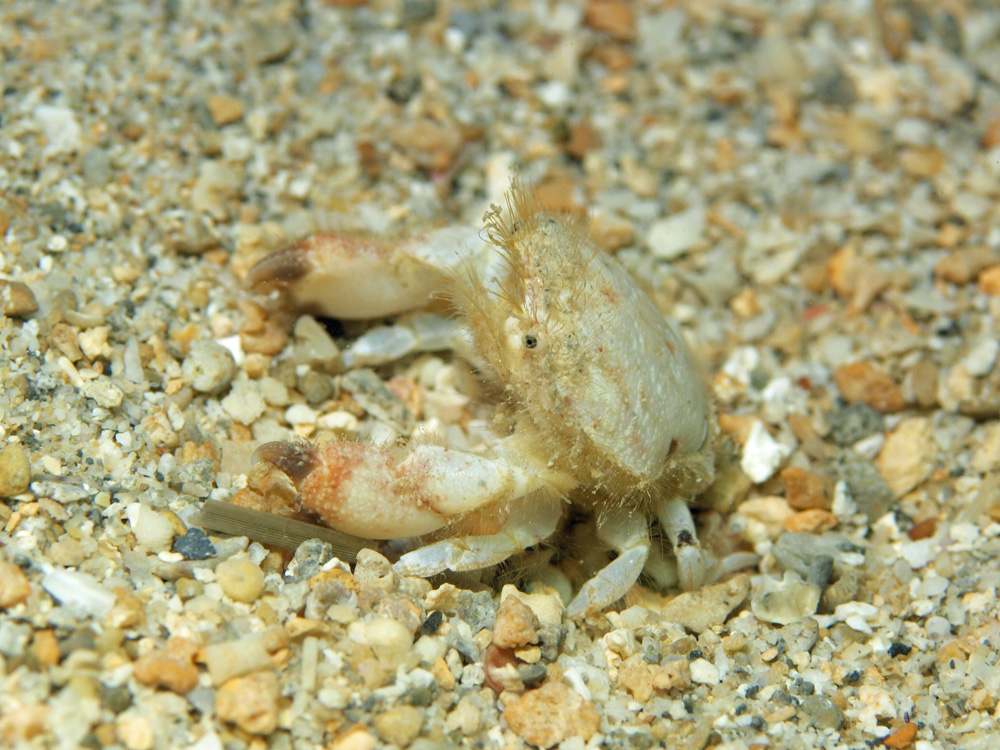 撮影 2013/11/28 沖縄県 沖縄島 掲載 2019/07/31 ⇒カニの仲間 甲の形やすべすべ具合からするとゴイシガニの仲間だと思います。ゴイシガニそのものかもしれないなあ?ウーン、悩ましい。 ヒメゴイシガニの可能性もあり、誤同定はなるべく減らしたいので、種類は不明としておきます。