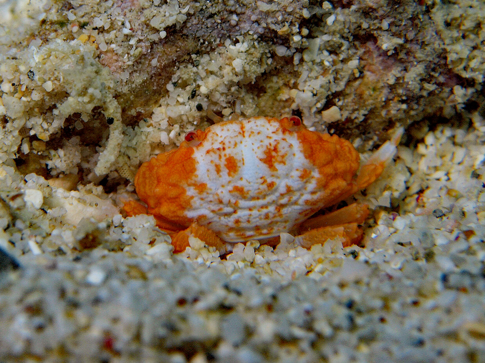 オウギガニの仲間かと思いますが、カニに関しては「海の甲殻類」以来20年以上本格的な図鑑が出ていないので、自分は分類の変更や新種の記載などの最新情報からかけ離れつつあるのだろうと想像し、だんだん同定が慎重になってきています。