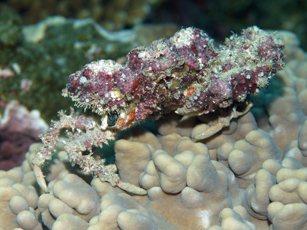 石ころに擬態しているゴツゴツの甲には不釣合いな細い脚が写っている写真が撮れたので追加掲載しました。