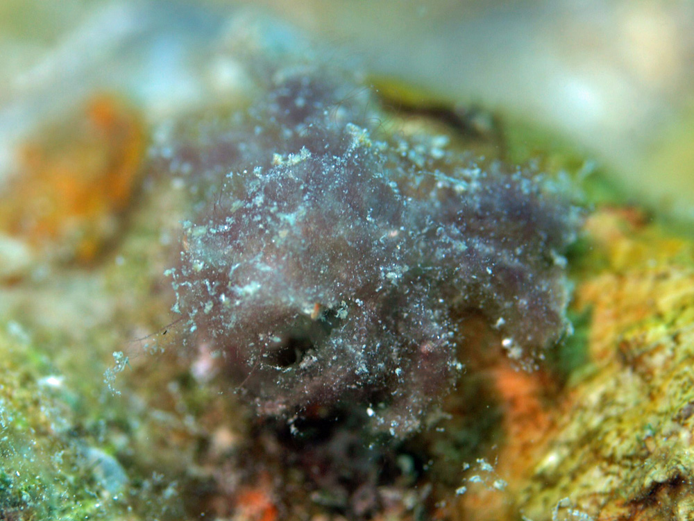このカニ、カニによくある擬装の仕方ですが体中に藻くずをつけて何がなんだかわからなくしています。ビデオなら動きがわかるのでカニであると知れるのですが、写真だと分かりにくいことこの上なし。