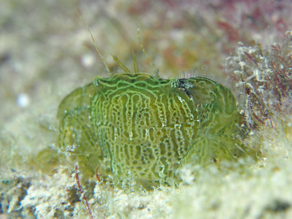 色と言い模様と言い、こんなに個性的なカニに出遭えてラッキーという以外に言葉がありません。