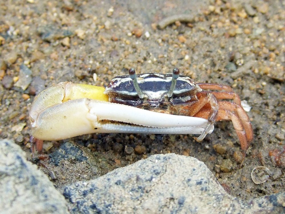 撮影 2008/07/13 沖縄県 石垣島 掲載 2013/01/22 ⇒カニの仲間 前向きの近接写真が撮れたので追加しました。巨大なはさみ脚が重いので左手で支えているように見えるのは偶然そうなったのかな?