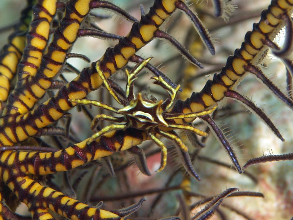 『海の甲殻類』 峯水亮/武田正倫/奥野淳児 (2002年初版2刷 文一総合出版)には赤みがかった体色の個体が掲載されていますが、ネットを検索するとボクの写真と同じく黄色がかった体色の写真が多数派です。