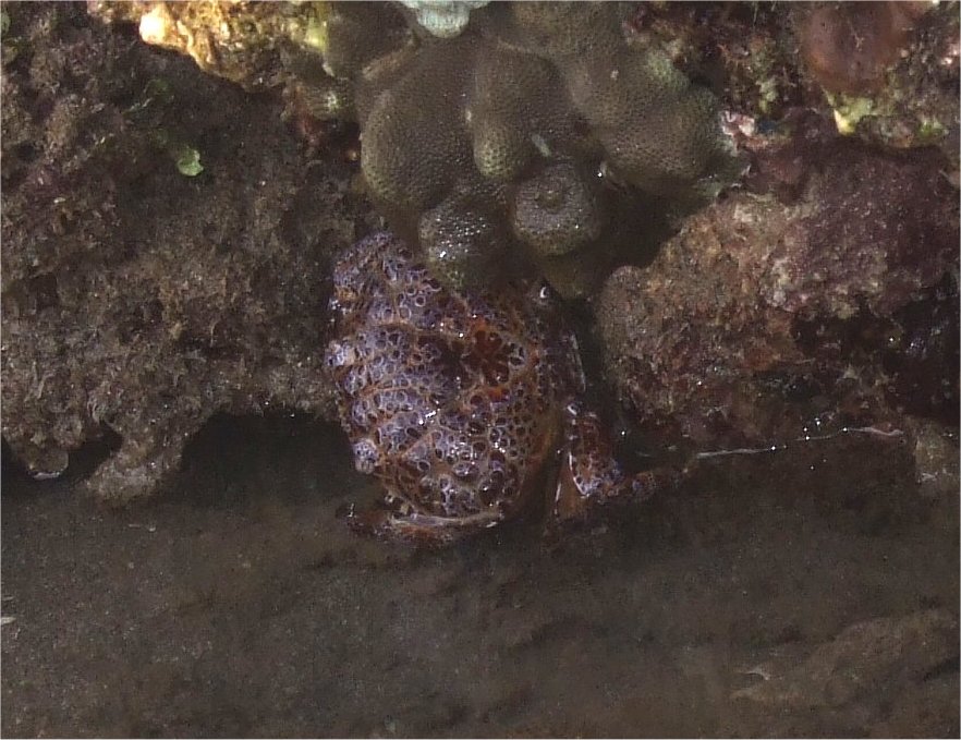 オウギガニ、ムツハオウギガニ、コオウギガニ・・・皆小さくて同じような形で色に変異が多く前縁の歯の数が微妙に違ったりとか、はさみ脚のコブとか指の色とかのちょっとした違いなので、写真ではなかなか判定が付きません。