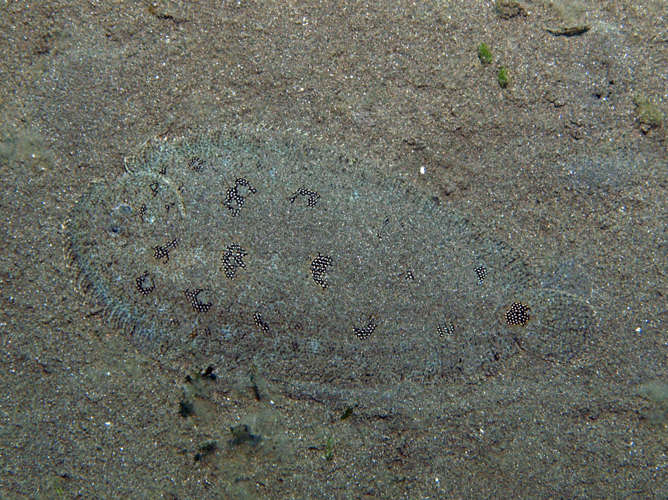 ほとんど砂と同化した体色で、全体に黒白のつぎがあたっているように見えます。他にこれといった特色がないところが特色かな?
