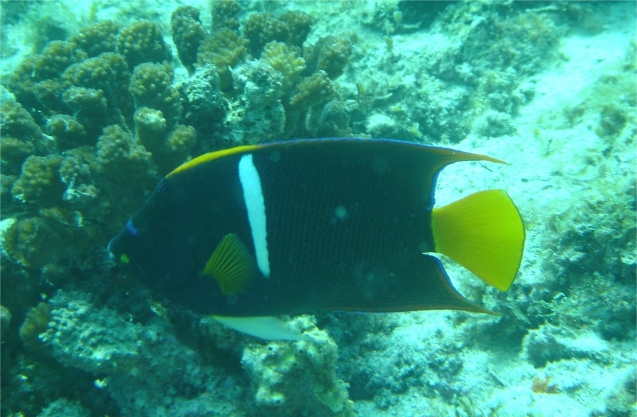 ウーン、眼がほとんど見えない・・・失敗です。しかし、英名のとおり、キンチャクダイとしては巨大な種類のひとつなので掲載しちゃいます。願わくば、いつかラパスを再訪し、ピントばっちりの写真が撮れますように!
