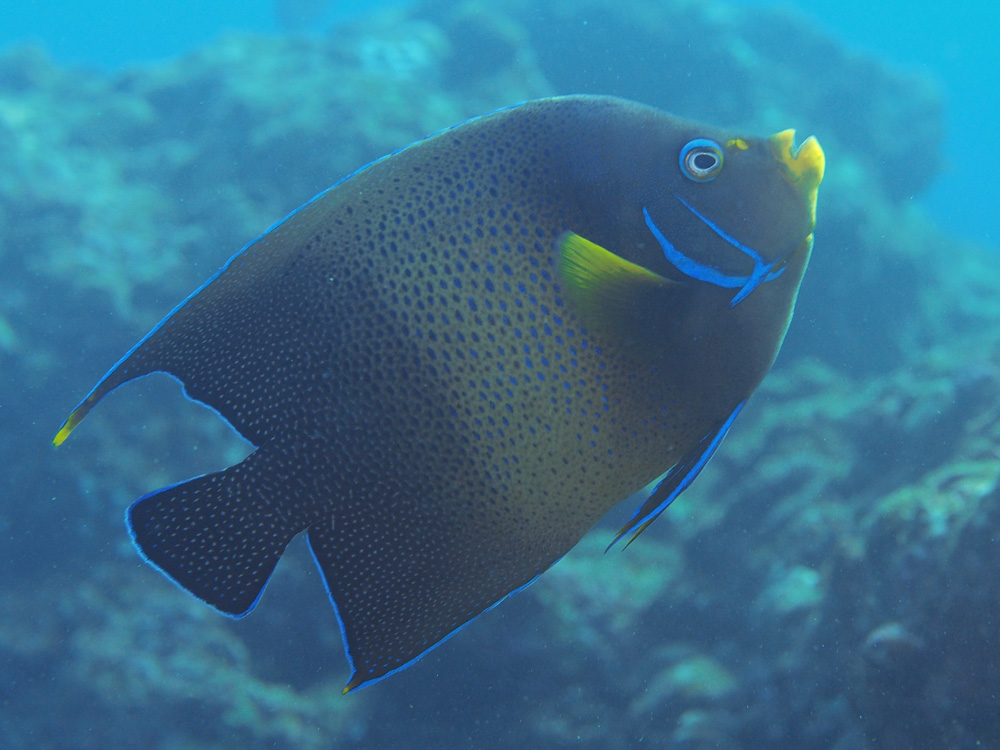 キンチャクダイの仲間は蛍光色に輝くのが多くて、艶やかでいいですね。
