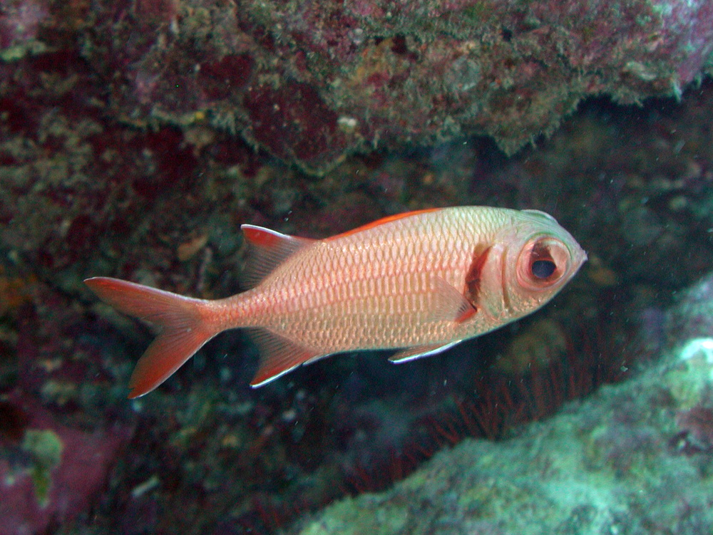 このお魚さんはちょっとした岩の陰にはどこにでもいますね。キンメダイのように美味しいのかしら。