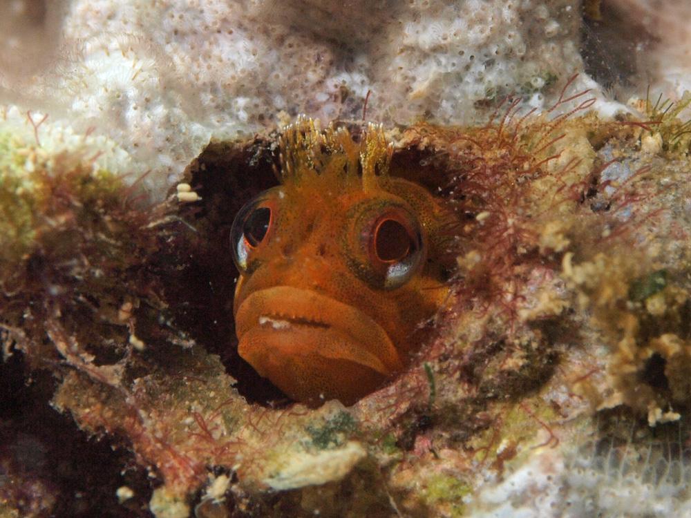 撮影 2012/10/03 沖縄県 沖縄島 掲載 2015/11/23 ⇒コケギンポの仲間 トウシマコケギンポに似ていて両者の写真での判別はほぼ不可能なのですが、トウシマコケギンポの生息域は千葉県から和歌山県まで。ハダカコケギンポは八丈島、沖縄以南です。