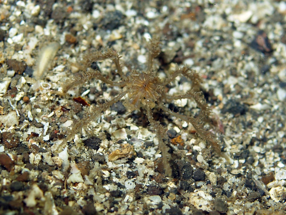 調べる前から予想していたとおり、ほとんど何も分かりませんでしたが、Wikipediaのウミグモ綱の解説では、どうやらオスが卵を抱えて世話するようです。