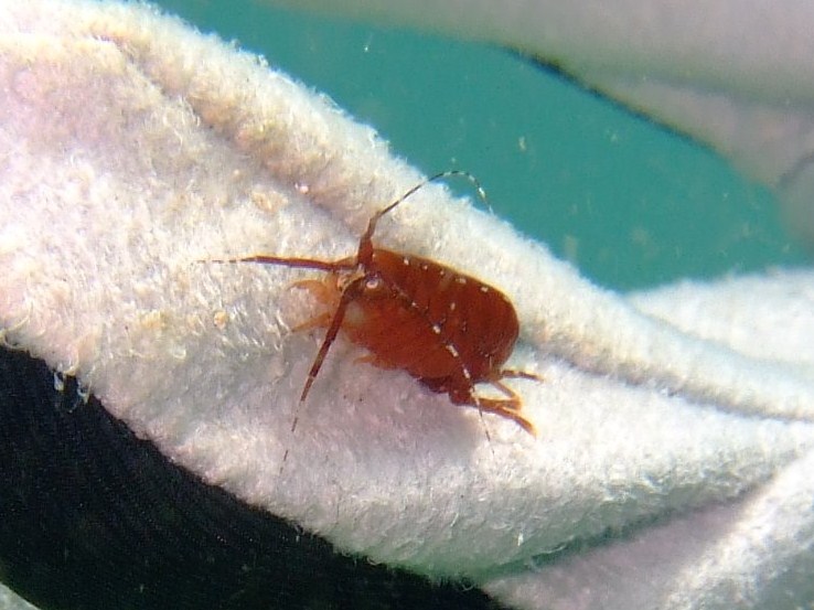異形といっては言い過ぎかもしれないけれど、それにしても普段見慣れている生物とは姿形が大きく異なって、一度見ただけで忘れられません。この手の生き物としては結構大きくて軽く全長10mm以上ありました。