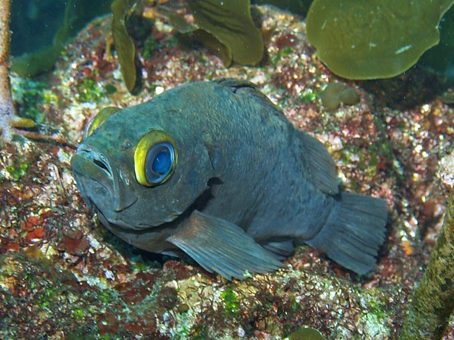 というわけで厳密ではありませんが、体色から判断するとクロメバルに該当すると思われます。なお釣り人などの間ではアオメバルと呼ばれていたそうで、たしかにこの被写体の体色は黒ではなくて青に見えます。