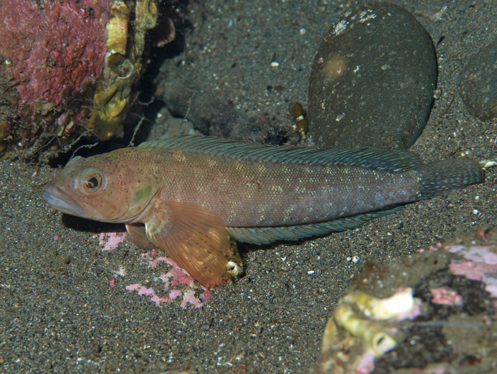 撮影 2010/08/22 北海道 羅臼 掲載 2015/03/02 ⇒メダマウオの仲間 これは、いわゆる“魚”のイメージの体型です。オオカミウオとかフサギンポとか、異形の魚たちを見たあとでは、なんか懐かしいなあ。