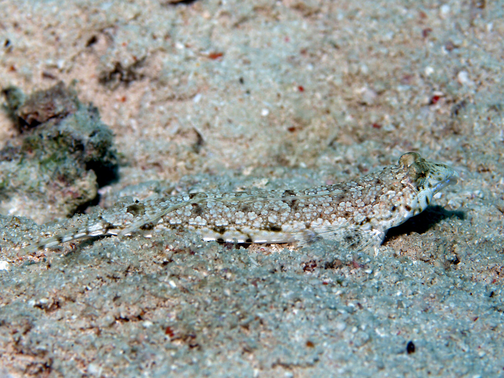 大瀬湾内の砂地の色に見事に同化しています。少し動いたから何かがいると気がついたけれど、もしも動かなかったらまったく気がつかないままに通り過ぎてしまったことでしょう。